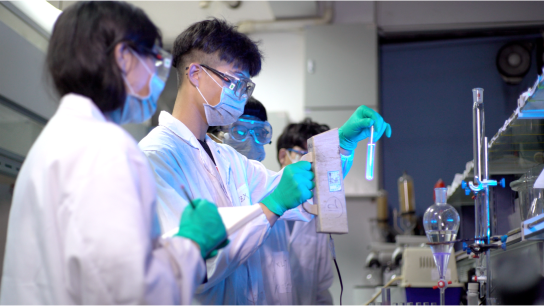 创新大赛金奖项目“奥蕾蓝光—优质OLED深蓝光材料供应商”团队成员开展科研实验